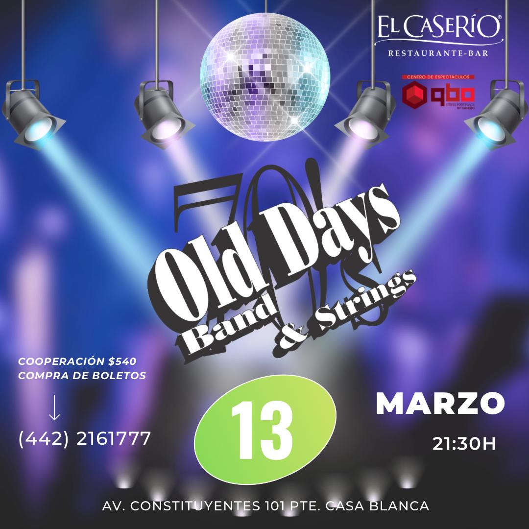 La Banda Old Days & Strings se forma el 28 de Abril de 1993 a raíz de la inquietud de hacer por la música lo que más nos gusta, interpretar con calidad que solo esta bella época de música logró, inicialmente con 9 elementos comenzamos haciendo de la mejor música de los 60’s y 70’s interpretaciones que el respetable público en general consideró muy dignas y buenas de compararse con las originales, no siendo la intención de ninguna manera imitar a los originales como es el caso de muchos grupos de Beatles, que por cierto también interpretamos, a lo largo de ya más de 32 años hemos ido consolidando un prestigio como la mejor agrupación de Oldies que es el concepto en popular nombre, con la salvedad de que ahora somos 14 integrantes, que con mucha experiencia y sobre todo conocimiento de lo que hacemos en cada instrumento, una sección de metales formada por Sax Alto y flauta, Sax Tenor, Sax Soprano y Flauta, Trompeta y Flugelhorn y Trombón, la sección rítmica está conformada por Guitarra eléctrica y acústica, Piano y sintetizador, Batería, Percusión y Bajo eléctrico, sección de cuerda en vivo Viola, y dos violines, así como dos vocalistas de primer orden y calidad, femenina y masculino que se ensamblan de manera armónica y con potencia, no de decibeles porque eso es un engaño, no el que suena más fuerte es el mejor, sino el que suena más real y asequible para la audiencia en general.